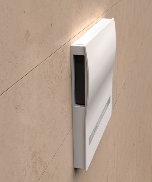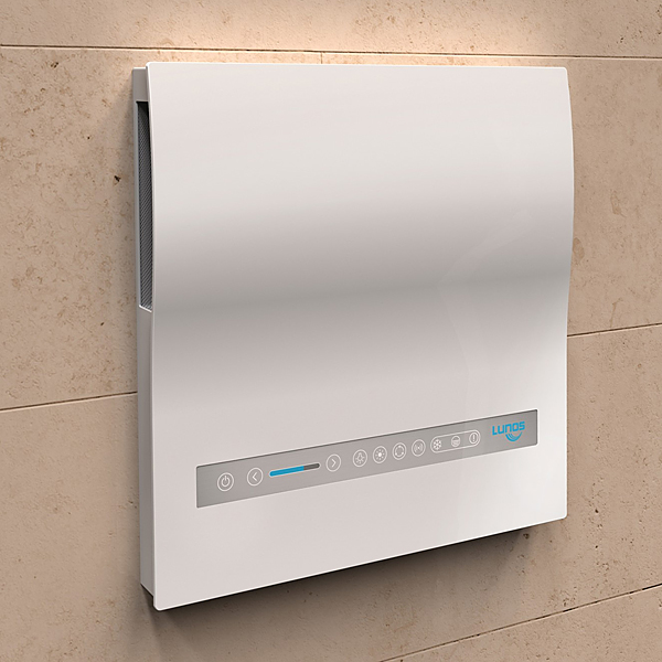 Man kontrollerar ventilationen genom den futuristiska och användarvänliga manöverpanelen, och man kan välja bland funktioner som vädringsläge och frostvakt, men har också ett helautomatiskt läge. Monteras antingen inbyggd i vägg eller utanpåliggande, med ett 160 mm rör med delad kanal genom yttervägg. Den drivs sedan med starkström 230 V. Så ett hål i väggen för luften att passera genom, och två hål i väggen för strömmen, sen är ventilationen klar.
