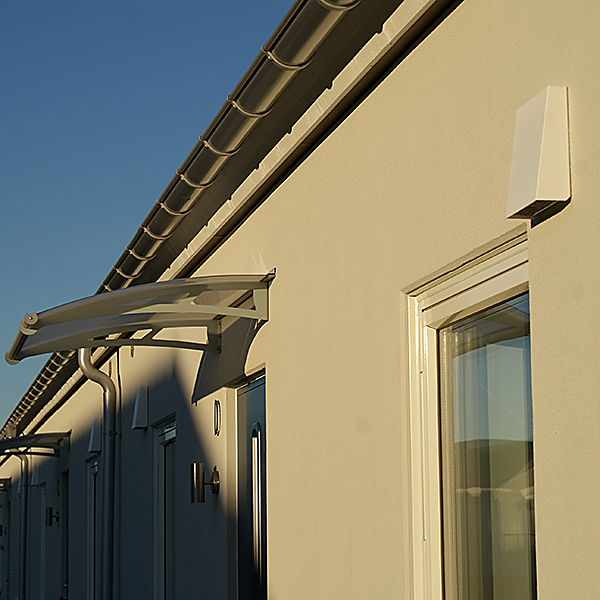 Beskrivning: Väder och ljudisolerande huv med insektsnät för enkelkanal.